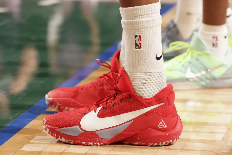 阿德托昆博穿着红色Freak2,得到25分8篮板5助攻1抢断
